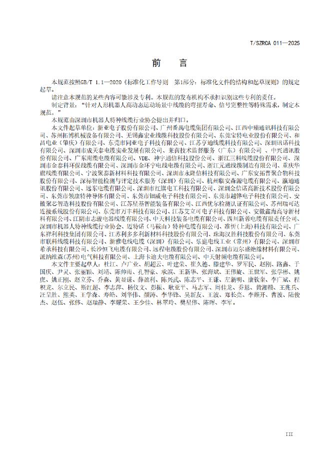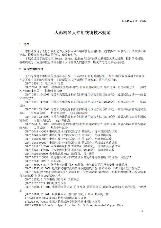 T/SZRCA 011-2025 人形机器人专用线缆技术规范