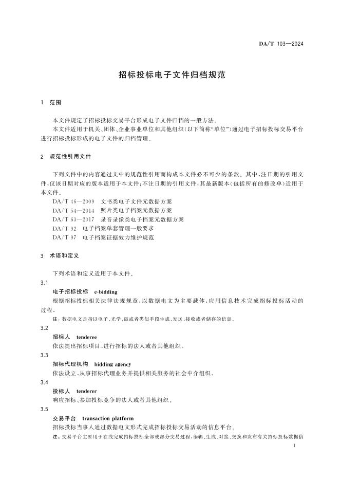 DA/T 103-2024 招标投标电子文件归档规范