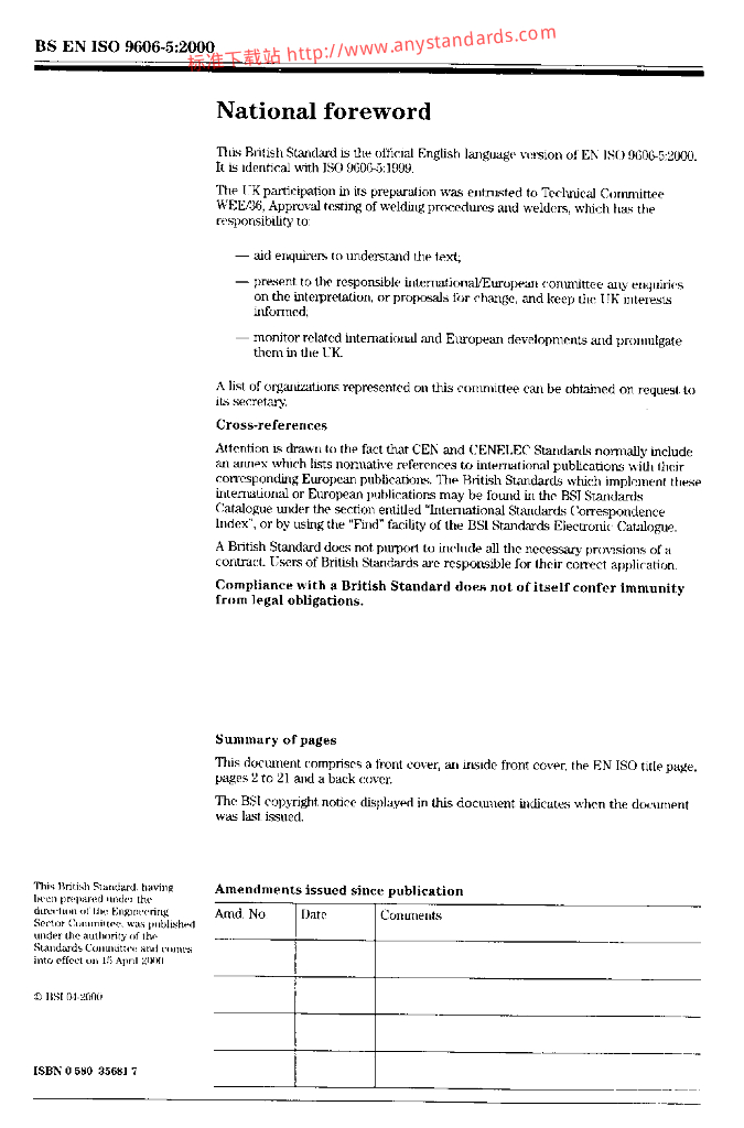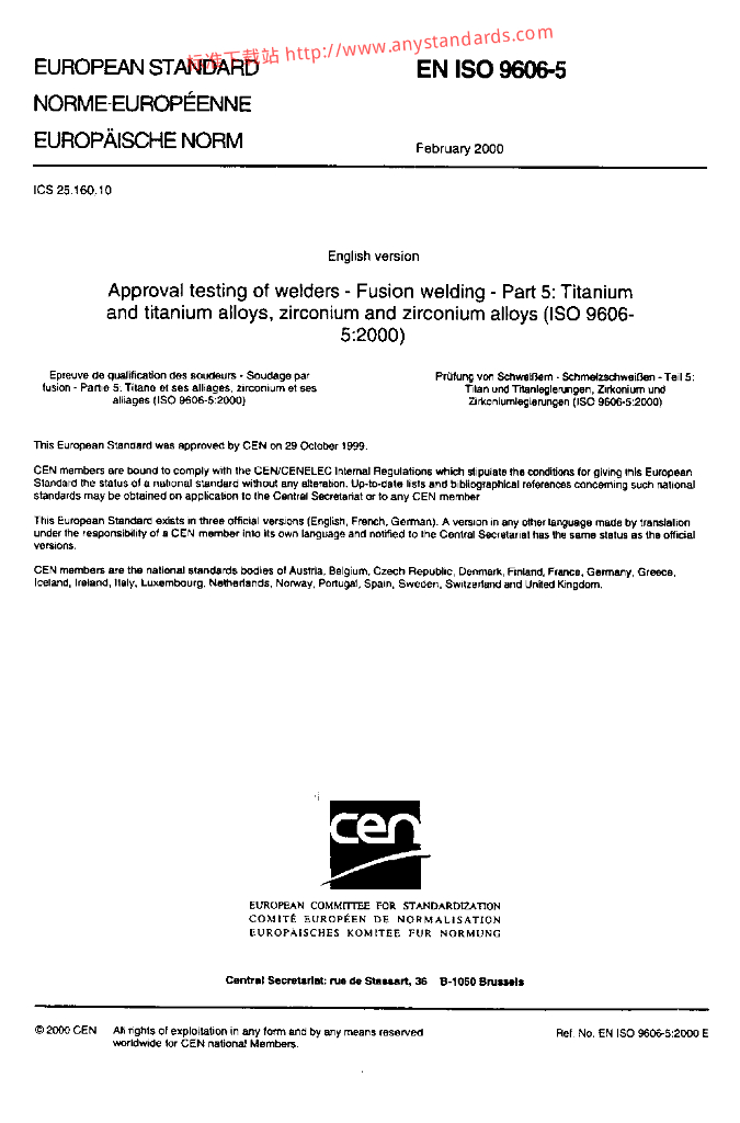BS EN ISO 9606-5-2000 焊工的认可测试.熔焊.钛和钛合金.锆和锆合金