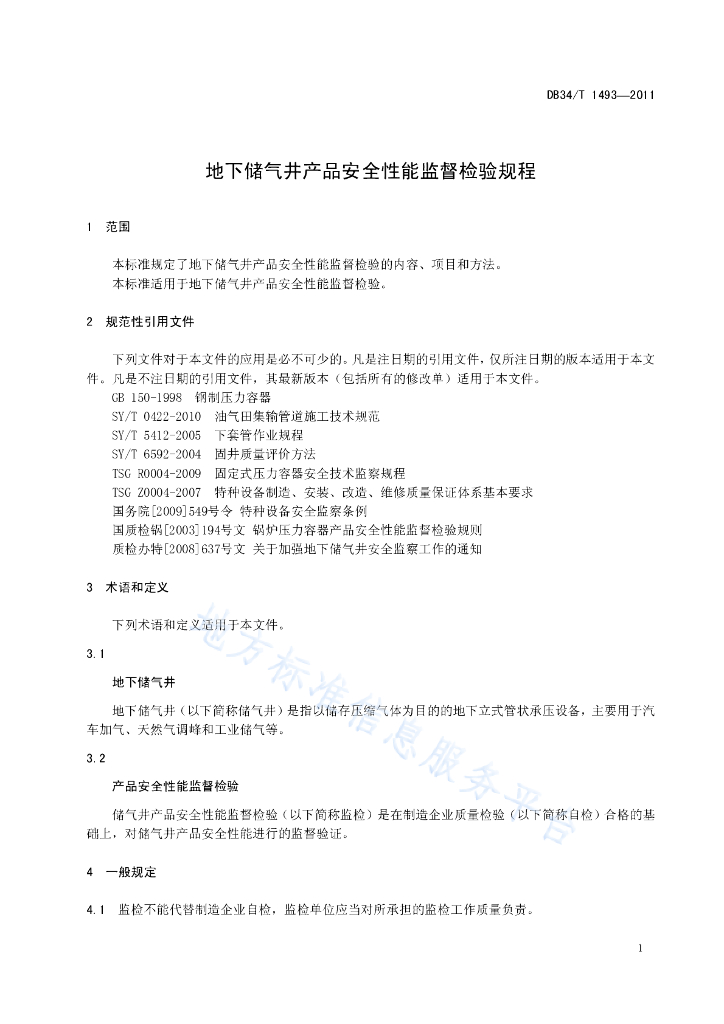 DB34/T 1493-2011 地下储气井产品安全性能监督检验规程