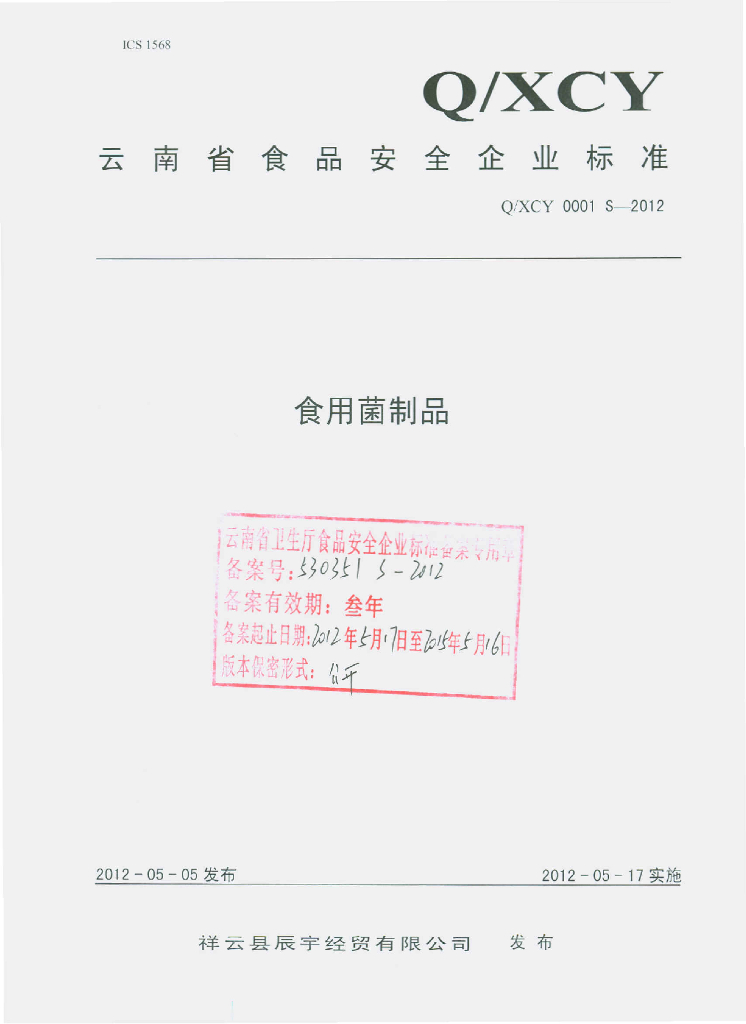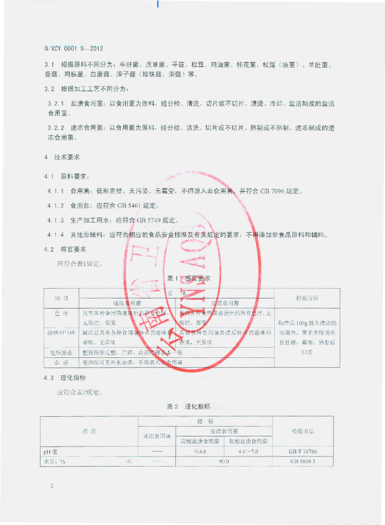 Q/XCY 0001S-2012 食用菌制品