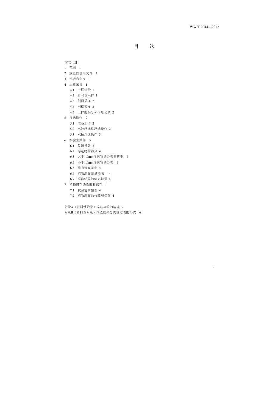WW/T 0044-2012 田野考古植物遗存浮选采集及实验室操作规范