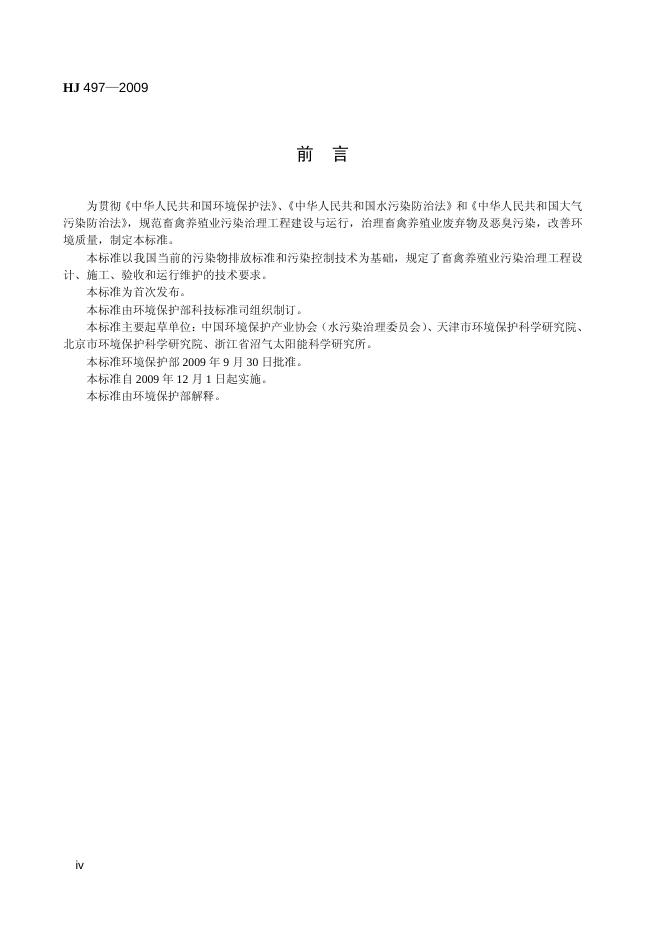 HJ 497-2009 畜禽养殖业污染治理工程技术规范