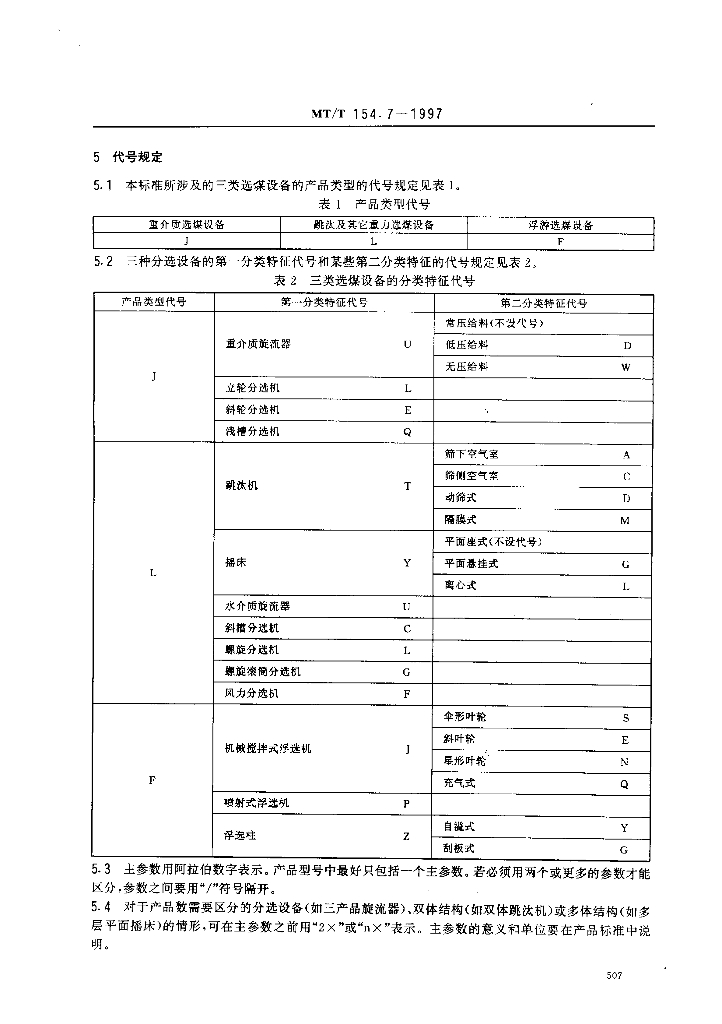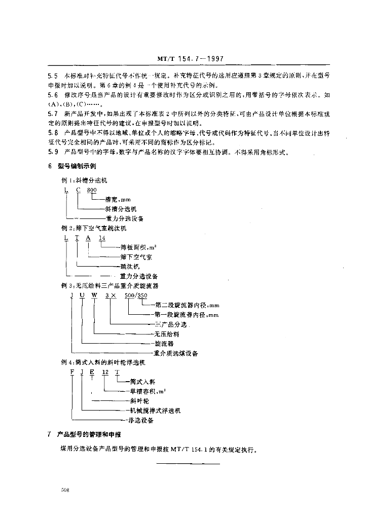 MT/T 154.7-1997 煤用分选设备型号编制方法