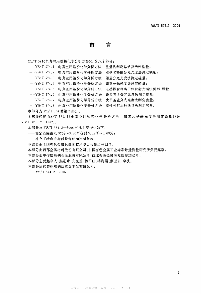YS/T 574.2-2009 电真空用锆粉化学分析方法磺基水杨酸分光光度法测定铁量