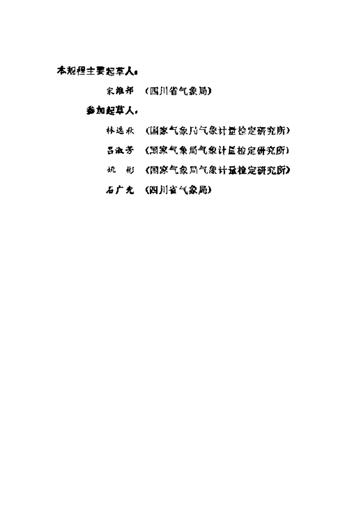 宋维邦(四川省气象局)、林逸秋(国家气象局气象计量检定研究所)、吕淑芳(国家气象局气象计量检定研究所)、姚彬(国家气象局气象计量检定研究所)、石广先(四川省气象局)