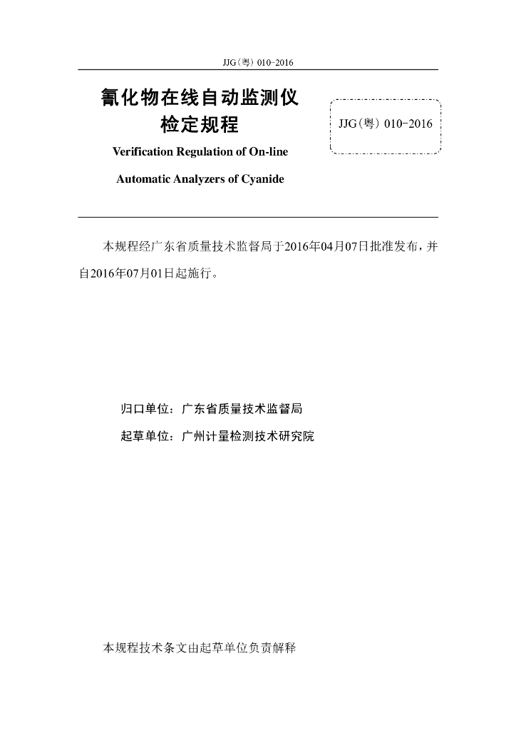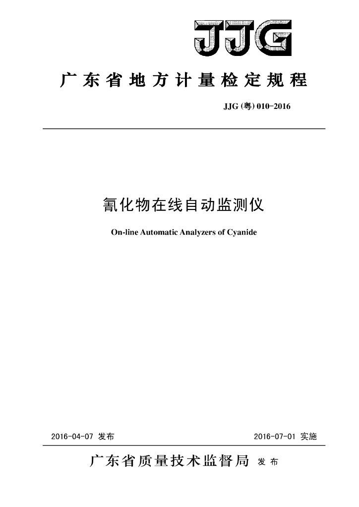 JJG(粤)010-2016 氰化物在线自动监测仪检定规程