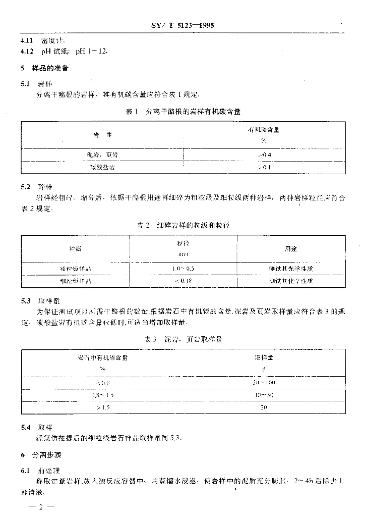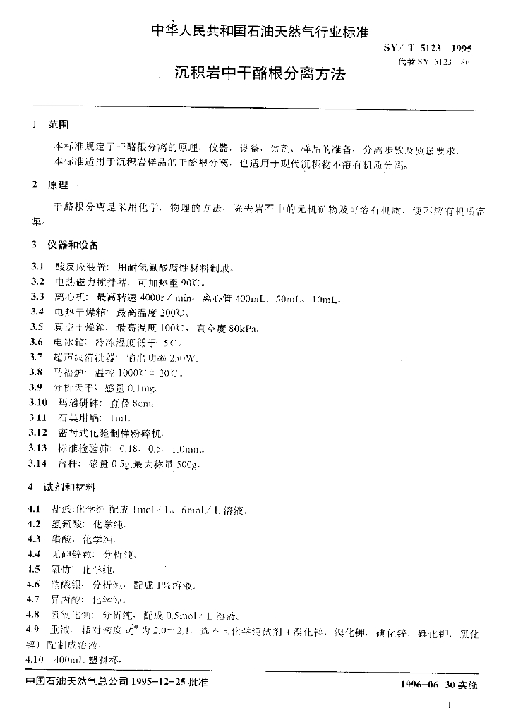 SY/T 5123-1995 沉积岩中干酪根分离方法