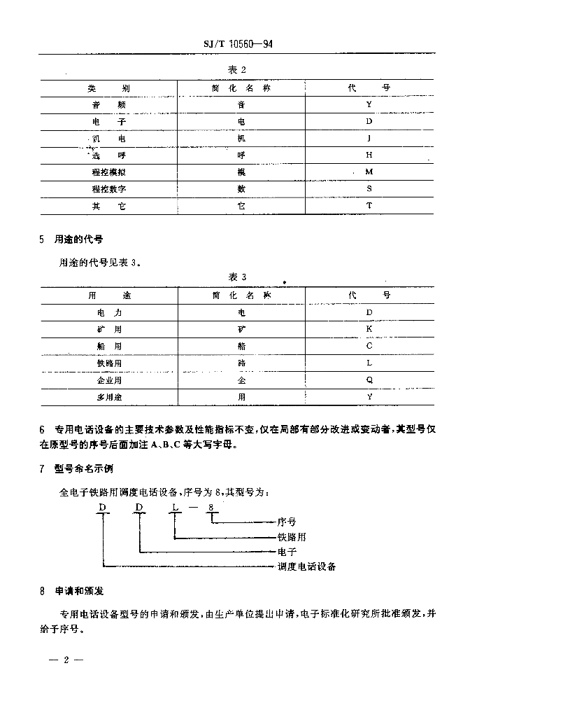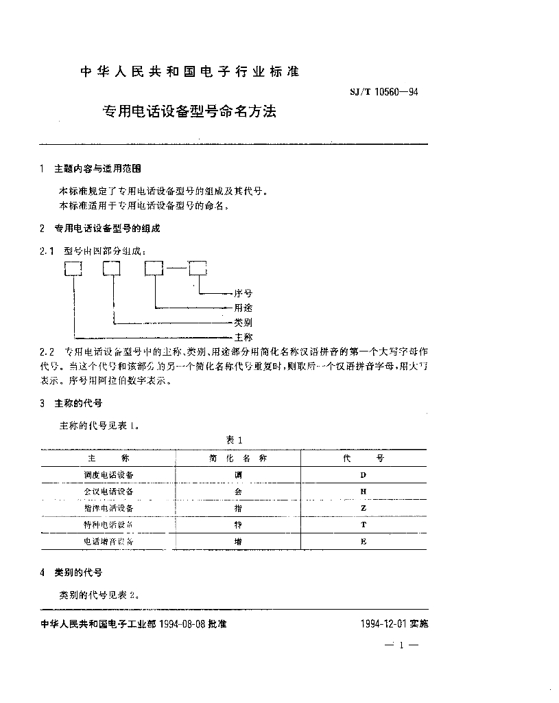 SJ/T 10560-1994 专用电话设备型号命名方法