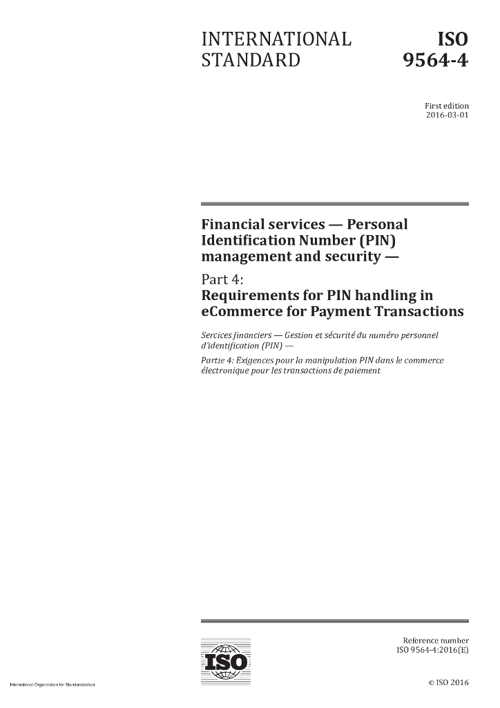ISO 9564-4-2016 金融服务 个人识别码(PIN)的管理与安全 第4部分:电子商务中支付交易的个人识别码(PIN)处理要求