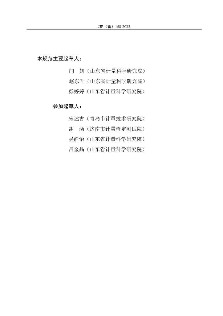 闫妍(山东省计量科学研究院)、赵东升(山东省计量科学研究院)、彭婷婷(山东省计量科学研究院)、宋述古(青岛市计量技术研究院)、胡涵(济南市计量检定测试院)、吴静怡(山东省计量科学研究院)、吕金晶(山东省计量科学研究院)