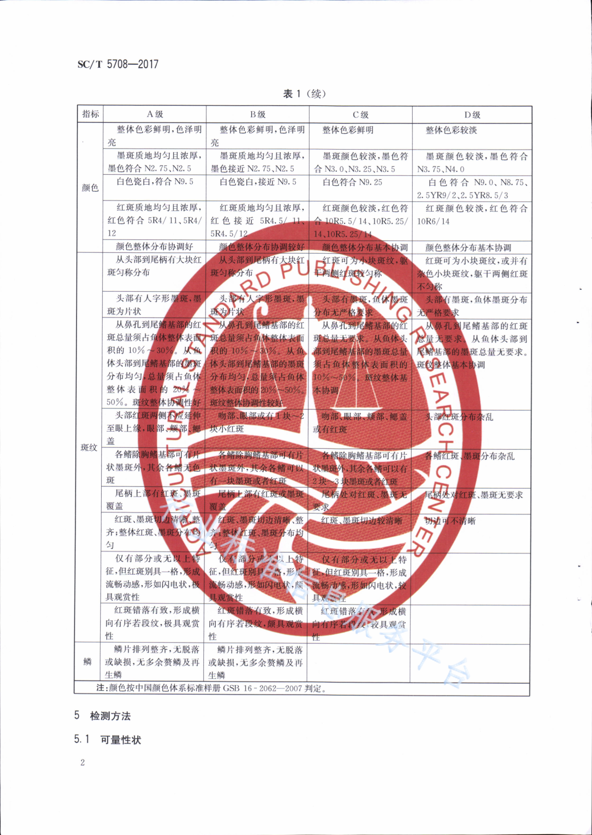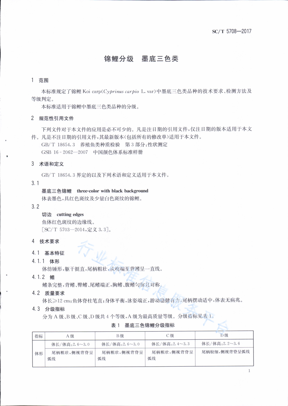 SC/T 5708-2017 锦鲤分级 墨底三色类