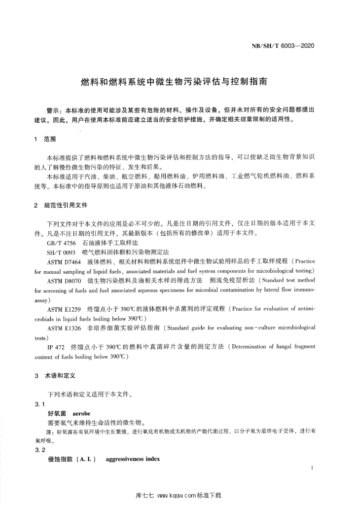 NB/SH/T 6003-2020 燃料和燃料系统中微生物污染评估与控制指南