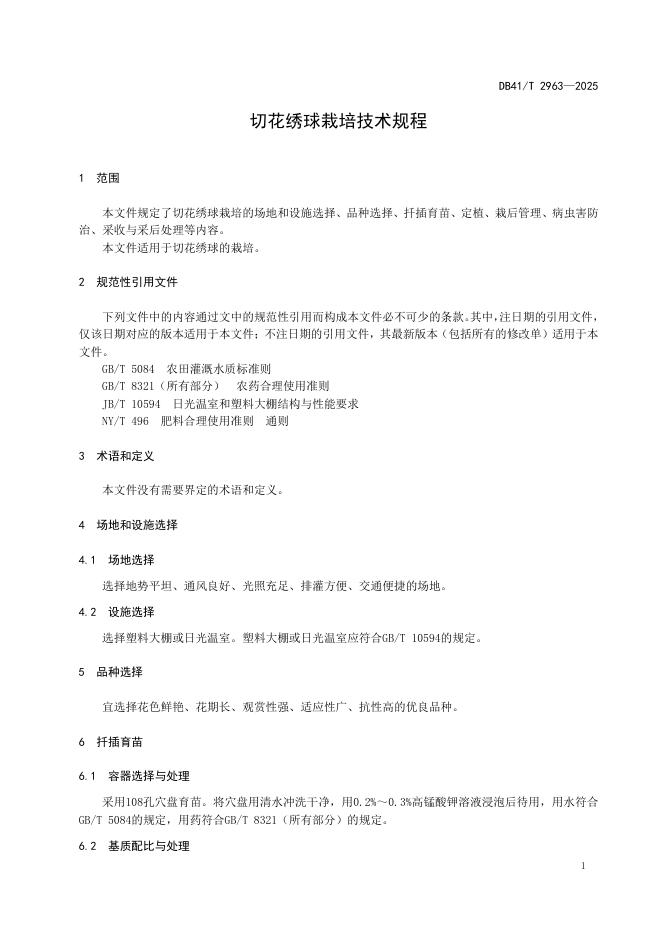 DB41/T 2963-2025 切花绣球栽培技术规程
