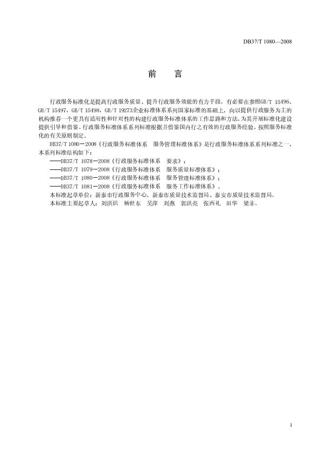 DB37/T 1080-2008 行政服务标准体系 服务管理标准体系
