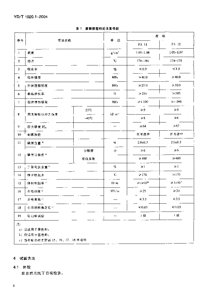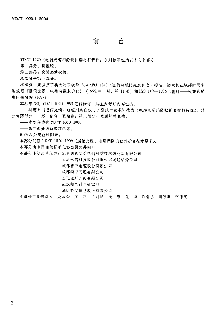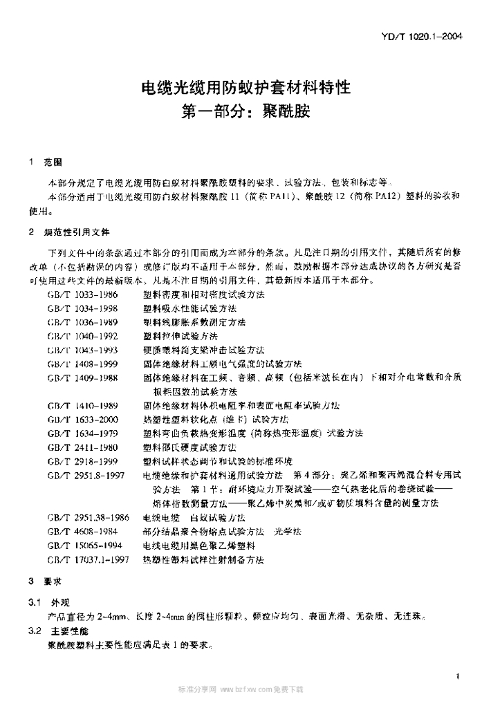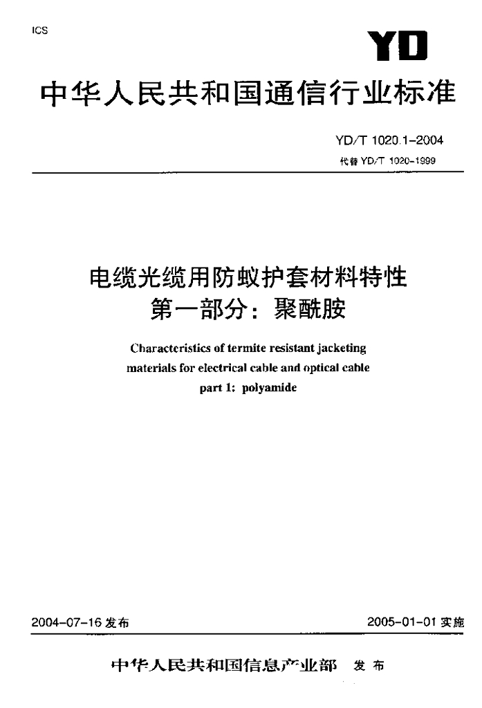 YD/T 1020.1-2004 电缆光缆用防蚁护套材料特性 第一部分:聚酰胺