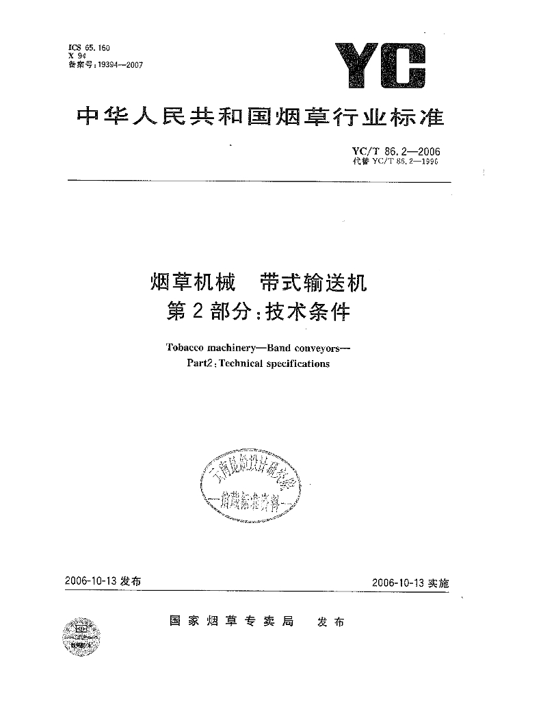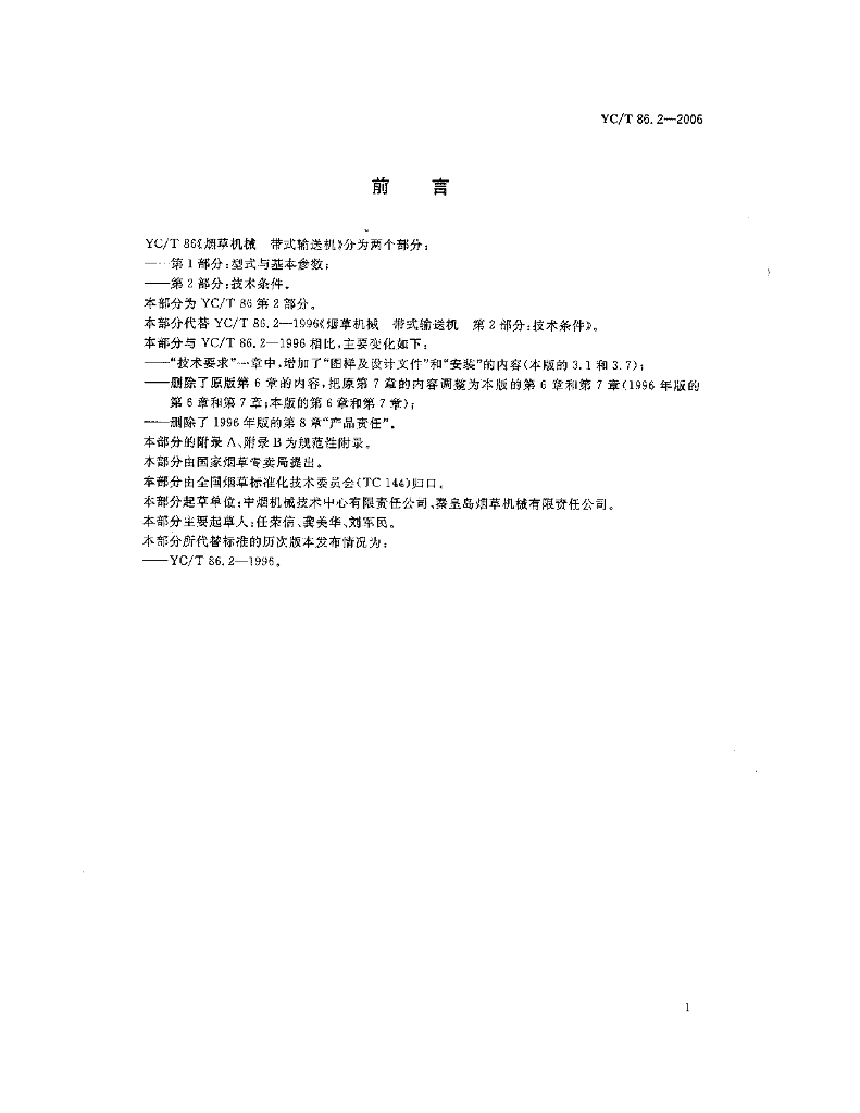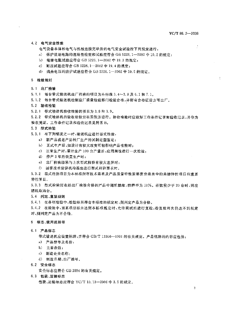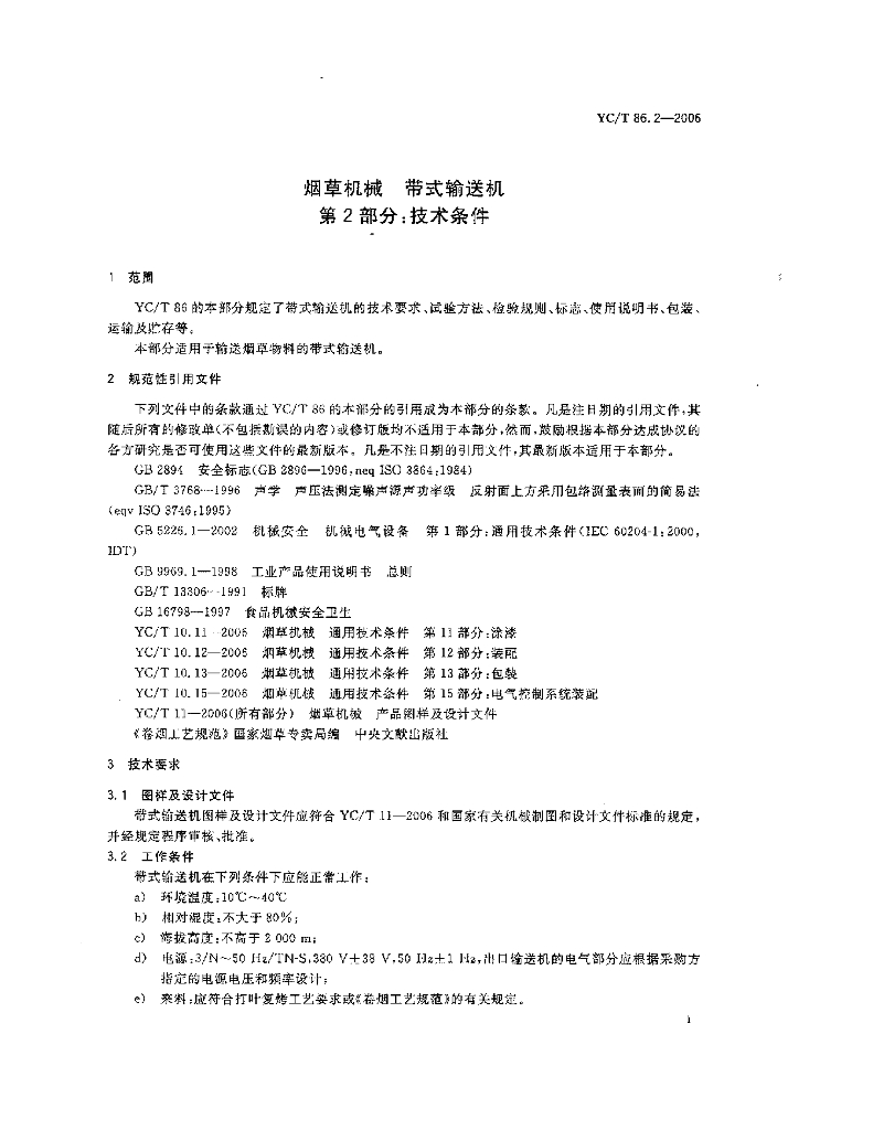 YC/T 86.2-2006 烟草机械 带式输送机 第2部分:技术条件