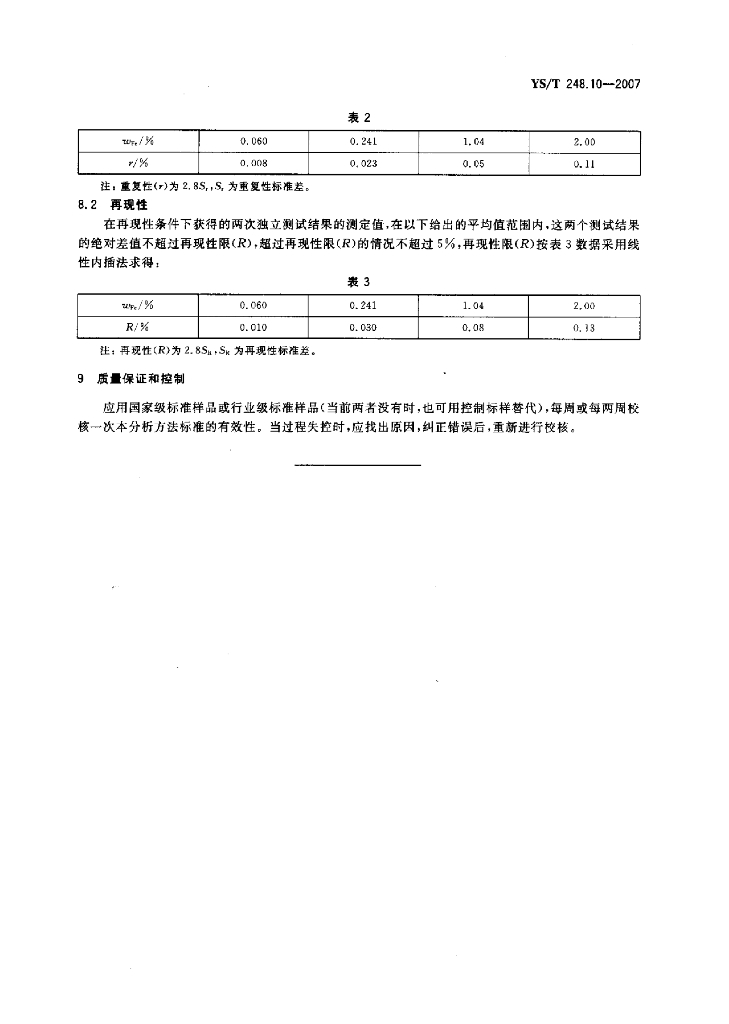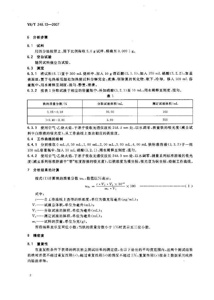 YS/T 248.10-2007 粗铅化学分析方法铁量的测定火焰原子吸收光谱法