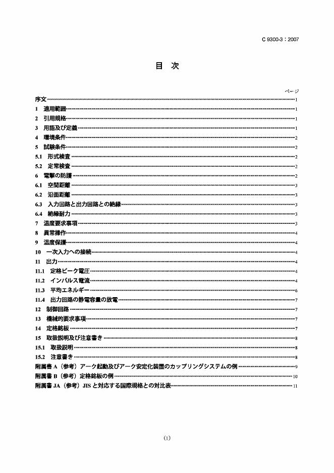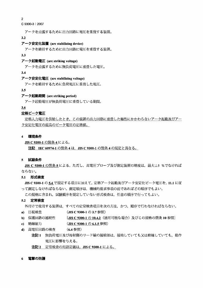 JIS C9300-3-2007 弧焊设备 第3部分:电弧放电和稳定设备
