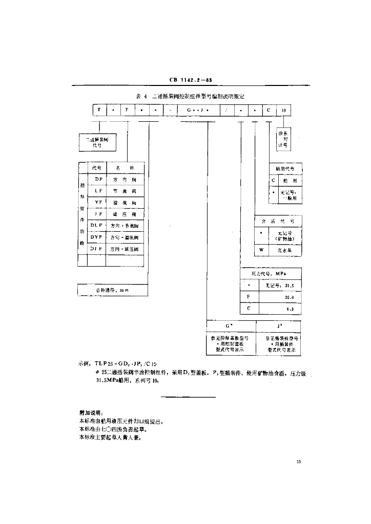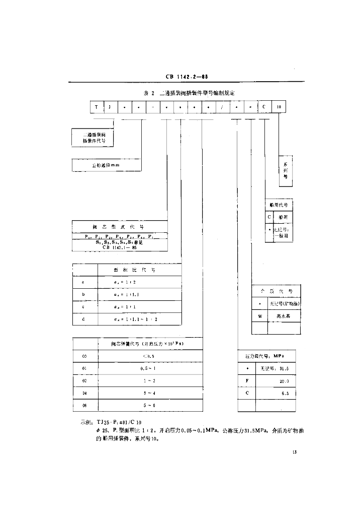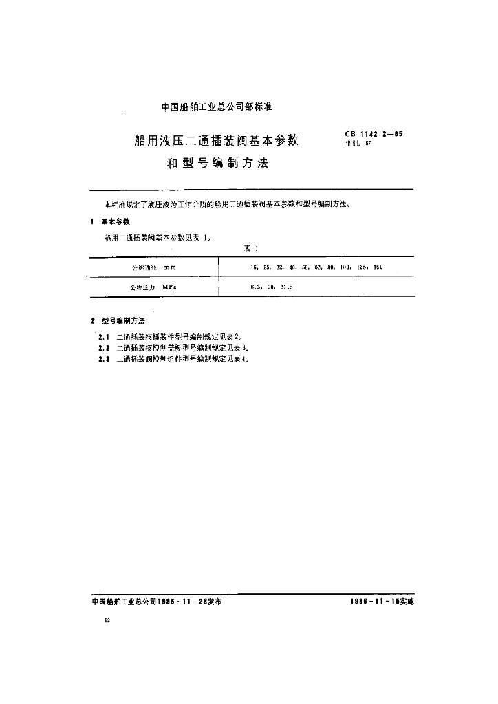 CB 1142.2-1985 船用液压二通插装阀 基本参数和型号编制方法