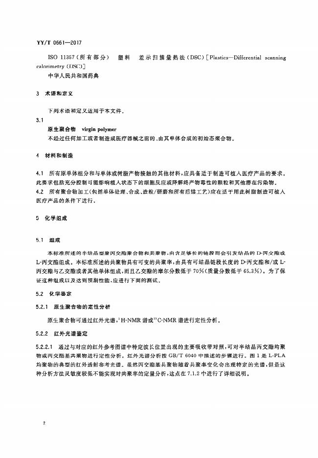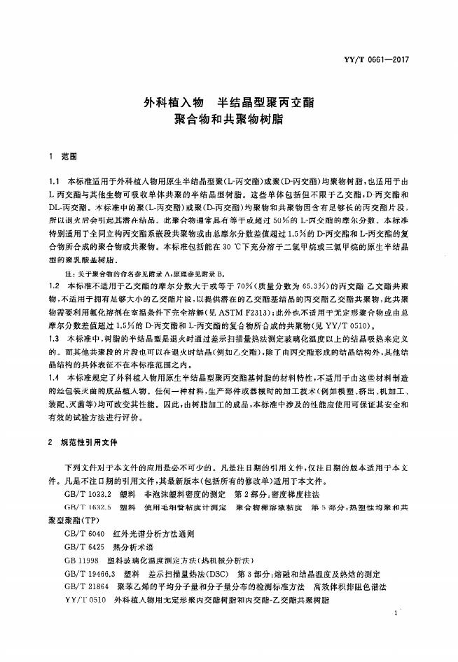 YY/T 0661-2017 外科植入物半结晶型聚丙交酯聚合物和共聚物树脂(含2025年第1号修改单)