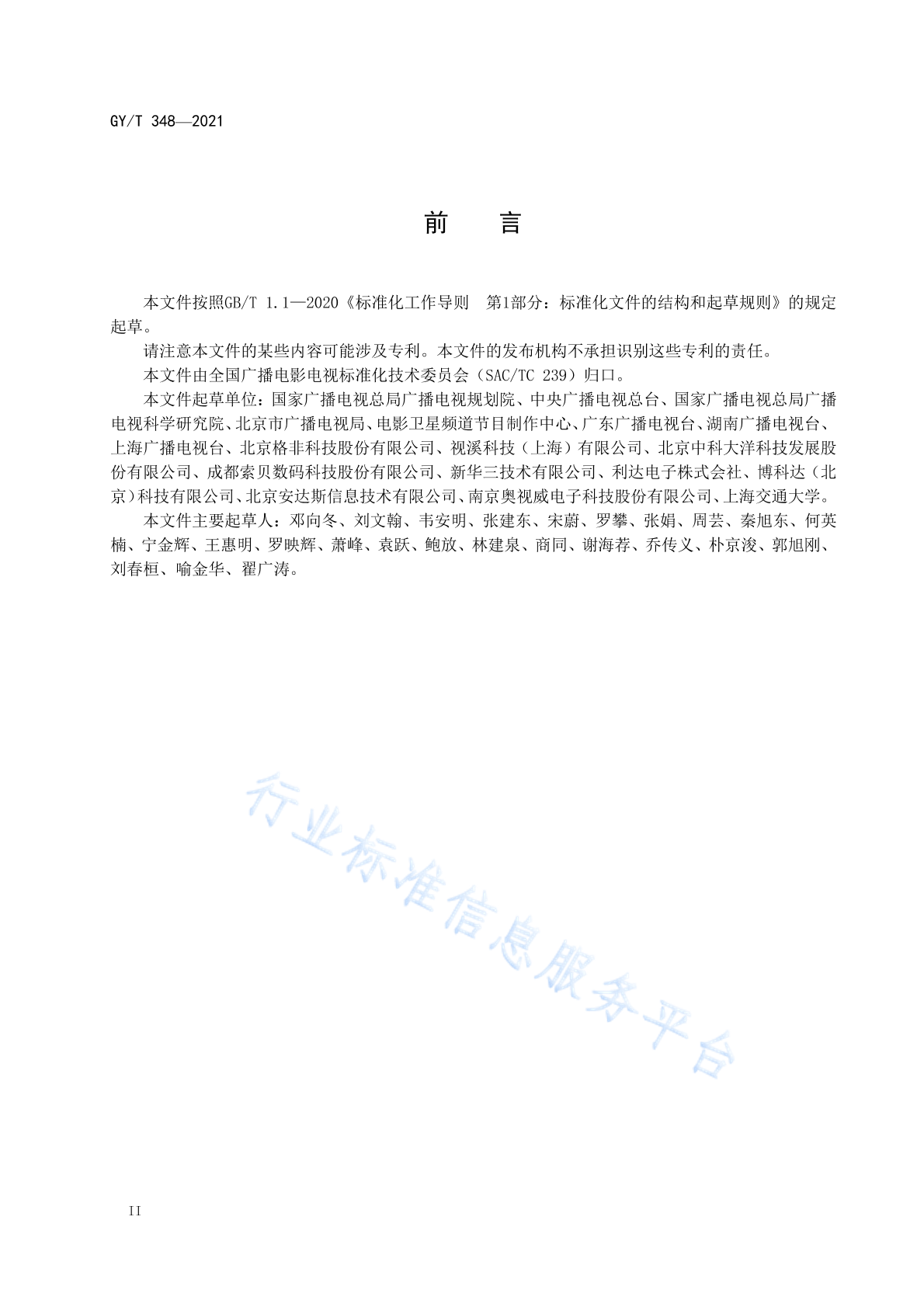 国家广播电视总局广播电视规划院、中央广播电视总台、国家广播电视总局广播电视科学研究院、北京市广播电视局、电影卫星频道节目制作中心、广东广播电视台、湖南广播电视台、上海广播电视台、北京格非科技股份有限公司、视溪科技(上海)有限公司、北京中科大洋科技发展股份有限公司、成都索贝数码科技股份有限公司、新华三技术有限公司、利达电子株式会社、博科达(北京)科技有限公司、北京安达斯信息技术有限公司、南京奥视威电子科技股份有限公司、上海交通大学