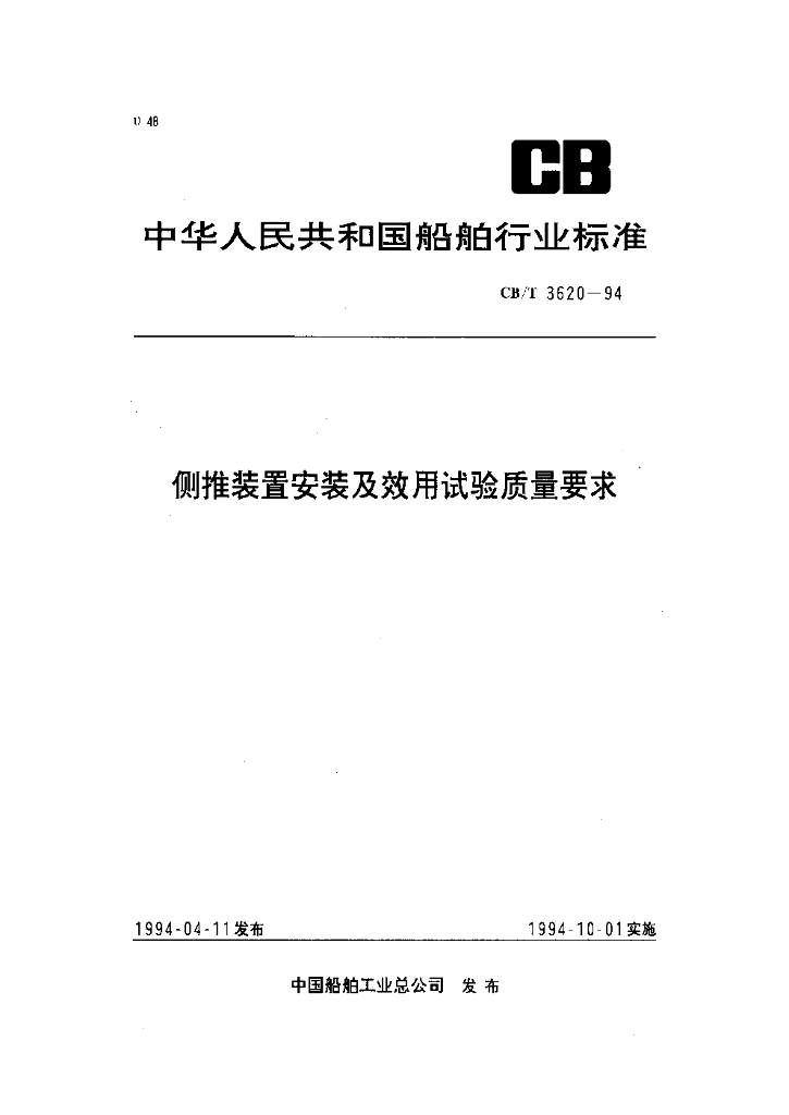 CB/T 3620-1994 侧推装置安装及效用试验质量要求