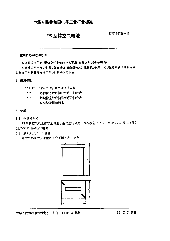 SJ/T 10138-1991 PS型锌空气电池