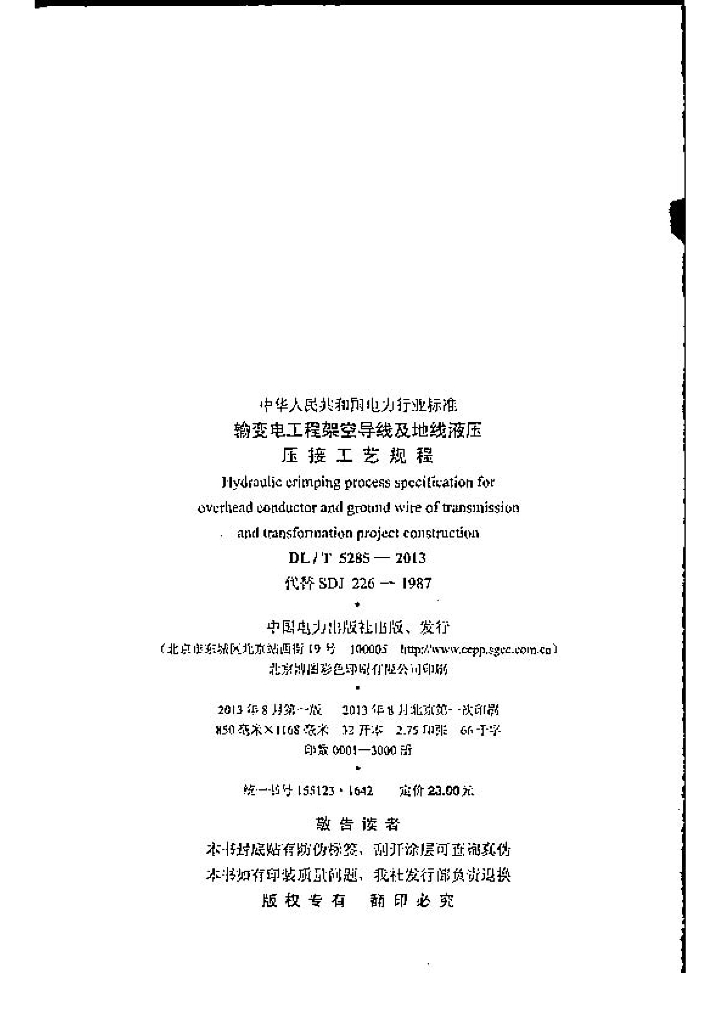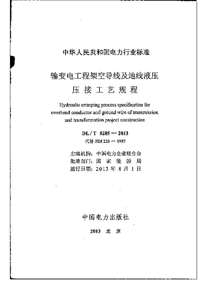 DL/T 5285-2013 输变电工程架空导线及地线液压压接工艺规程