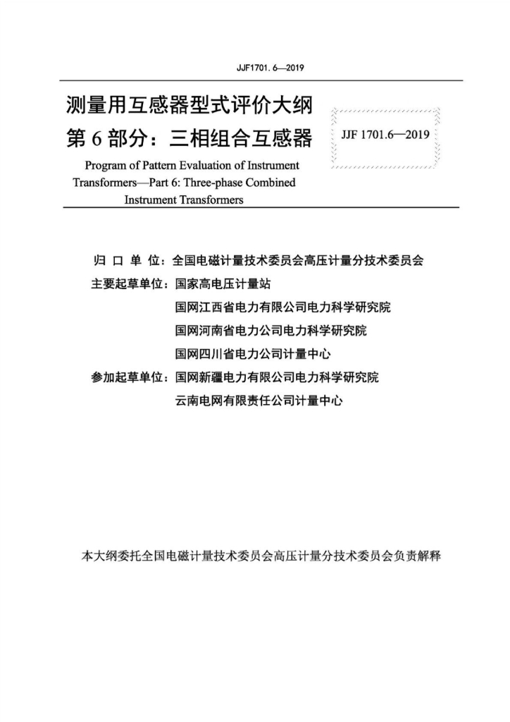 国家高电压计量站、国网四川省电力公司计量中心、国网江西省电力有限公司电力科学研究院、国网河南省电力公司电力科学研究院、国网新疆电力有限公司电力科学研究院、云南电网有限责任公司计量中心