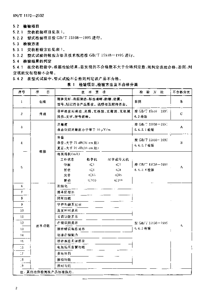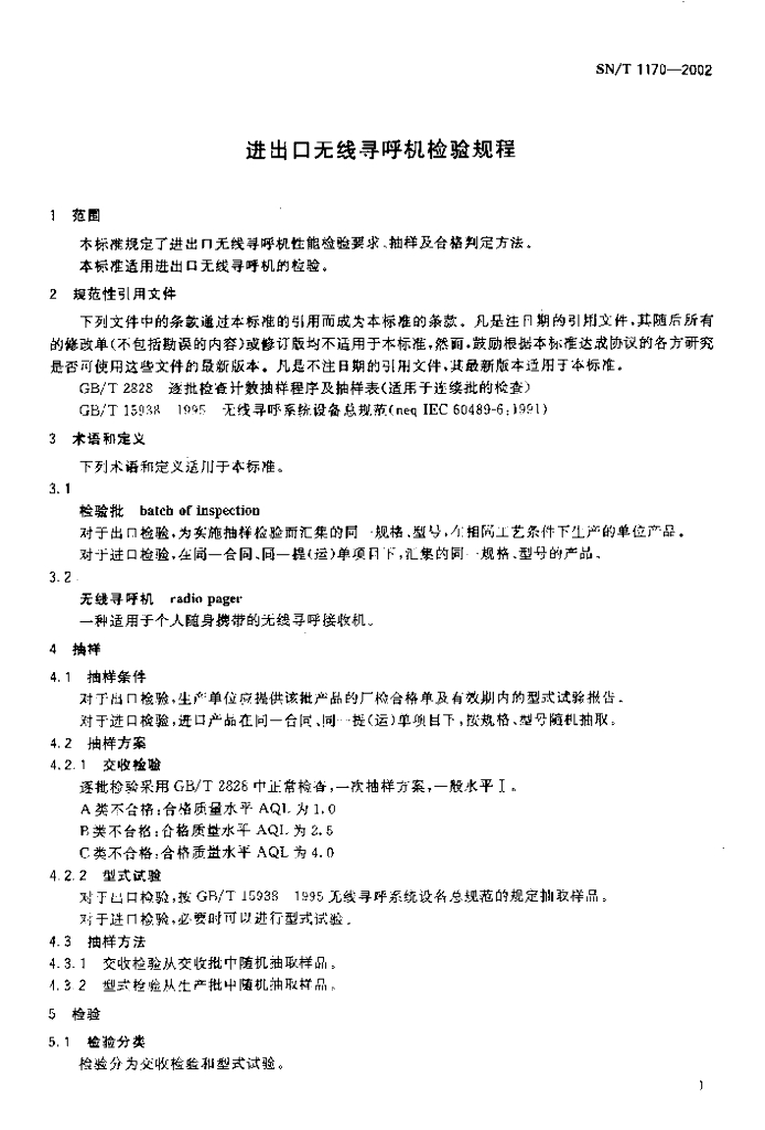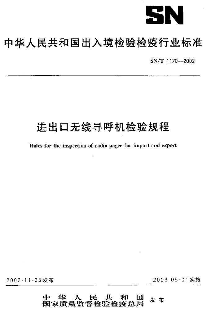 SN/T 1170-2002 进出口无线寻呼机检验规程