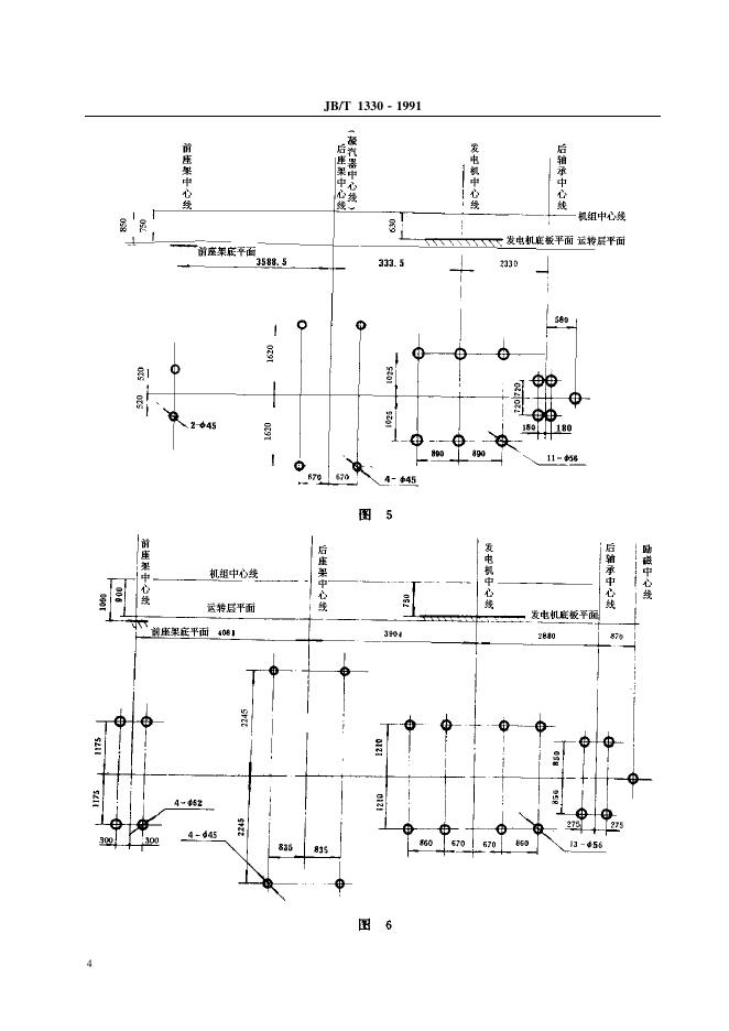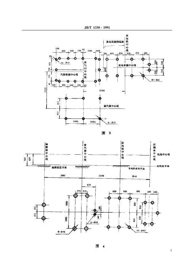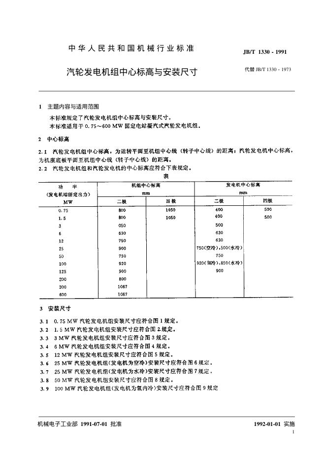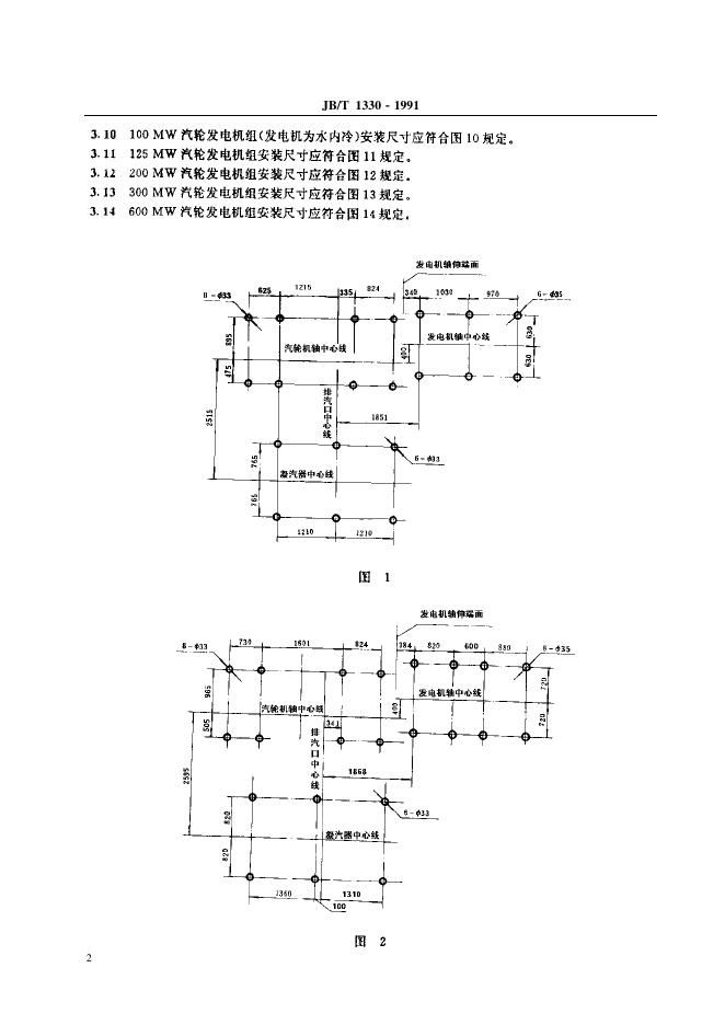 JB/T 1330-1991 汽轮发电机组 中心标高与安装尺寸