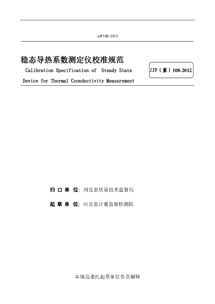 JJF(冀)108-2012 稳态导热系数测定仪校准规范