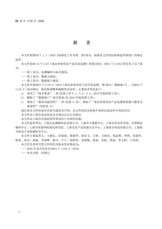 DB31/T 1110.3-2025 食品和食用农产品信息追溯 第3部分:数据接口规范
