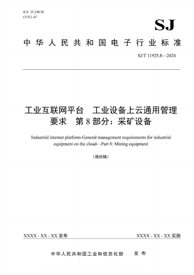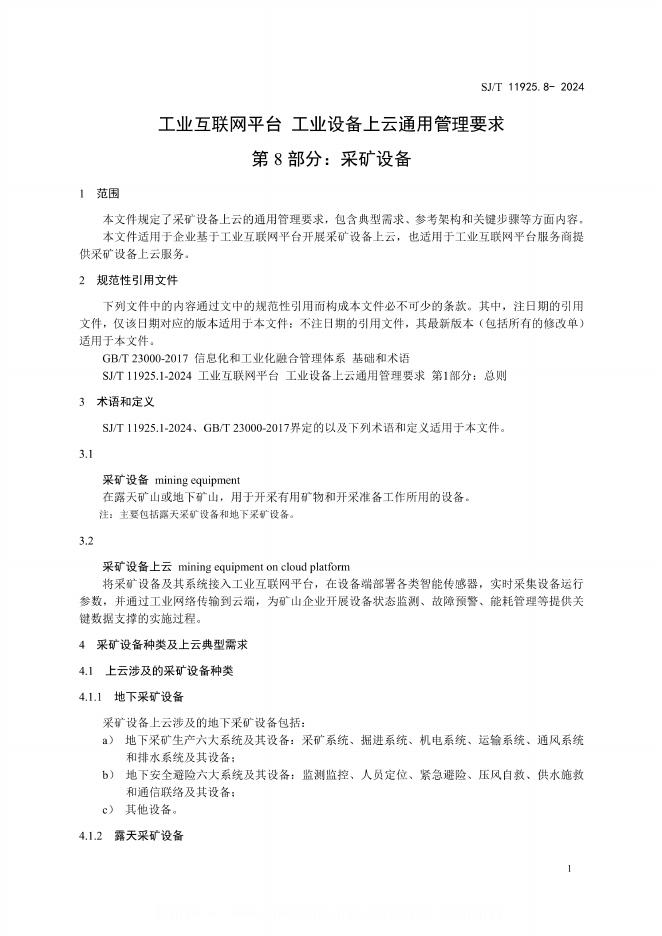 SJ/T 11925.8-2024 工业互联网平台 工业设备上云通用管理要求 第8部分:采矿设备(报批稿)