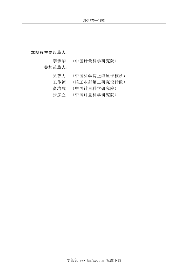 李承华(中国计量科学研究院)、吴智力(中国科学院上海原子核所)、王传祯(核工业部第二研究设计院)、高均成(中国计量科学研究院)、张彦立(中国计量科学研究院)
