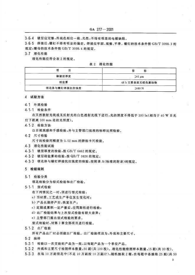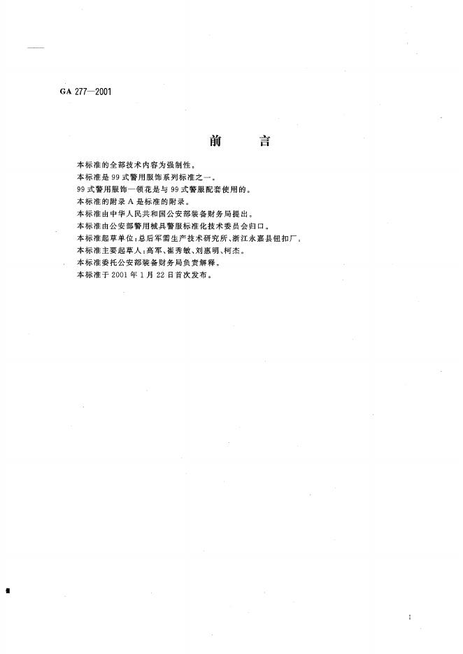 GA 277-2001 警用服饰 领花