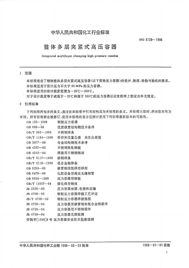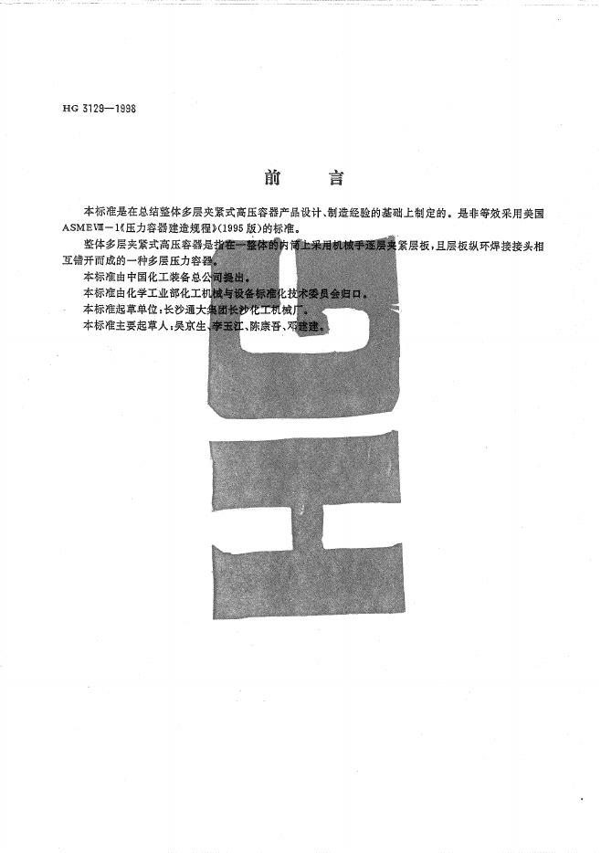 HG/T 3129-1998 整体多层夹紧式高压容器