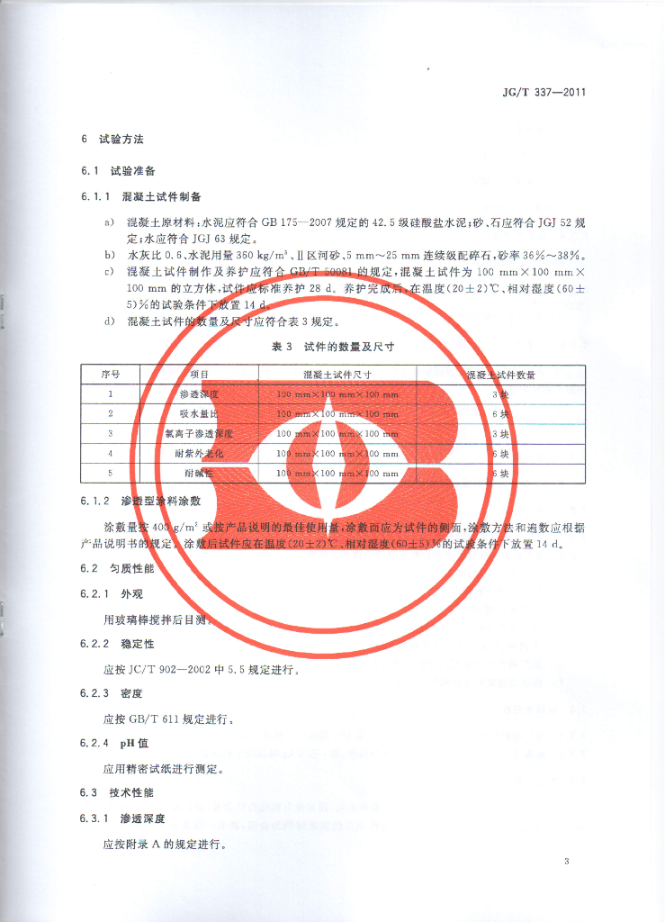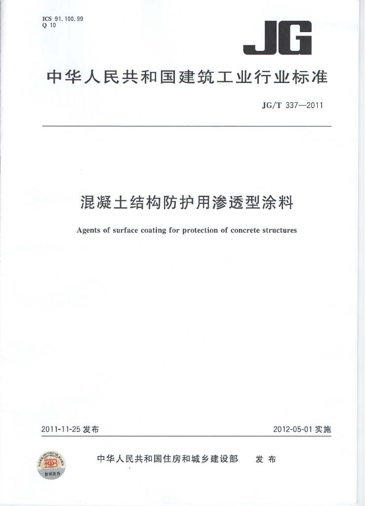 JG/T 337-2011 混凝土结构防护用渗透型涂料