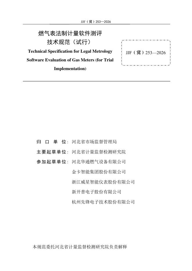 JJF(冀)253-2026 燃气表法制计量软件测评技术规范(试行)