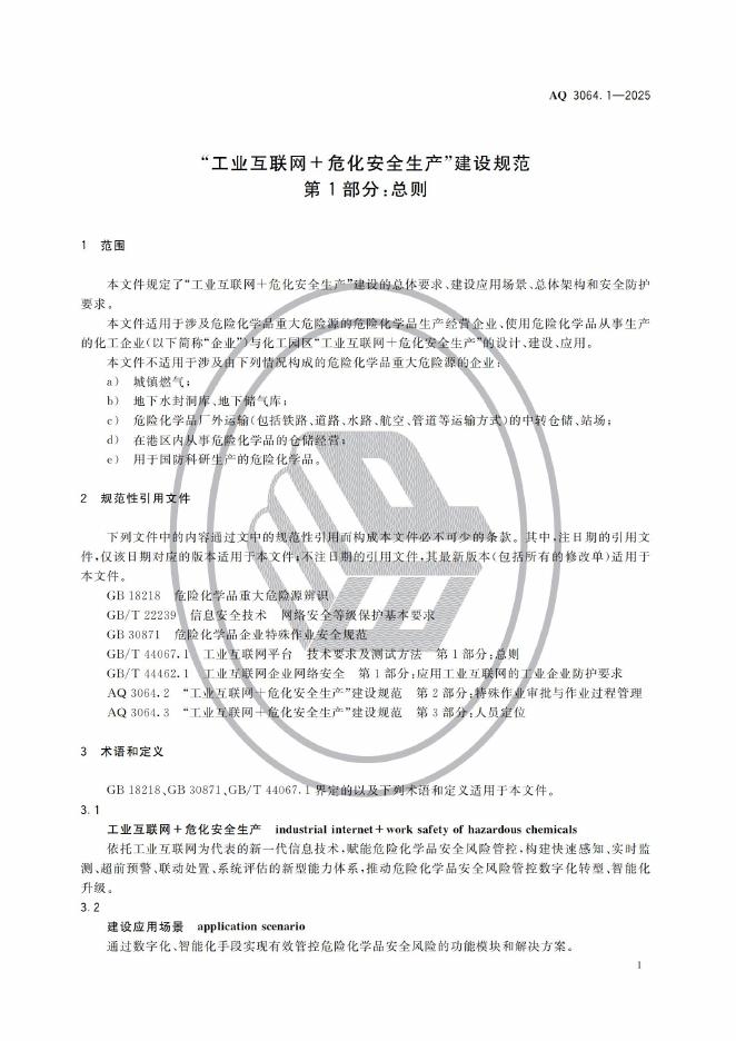 AQ 3064.1-2025 “工业互联网+危化安全生产”建设规范 第1部分:总则