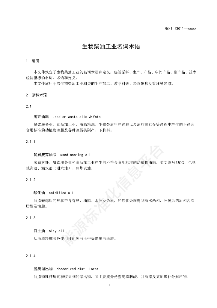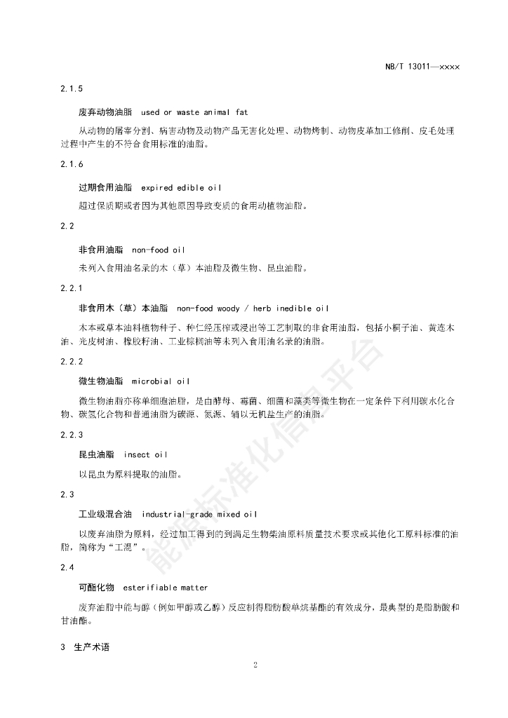 NB/T 13011-2024 生物柴油工业名词术语