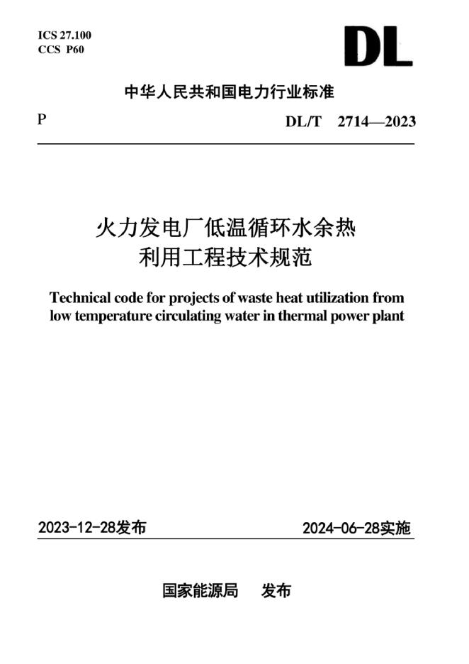 DL/T 2714-2023 火力发电厂低温循环水余热利用工程技术规范(附条文说明)