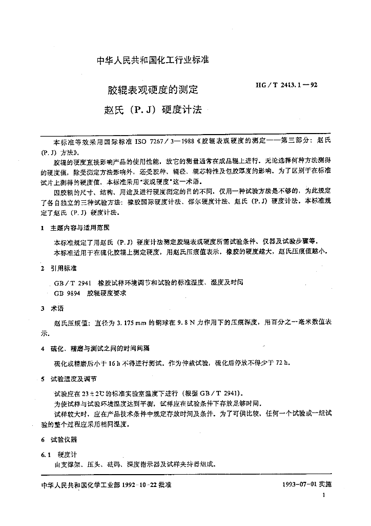 HG/T 2413.1-1992 胶辊表观硬度的测定 赵氏(P.J)硬度计法