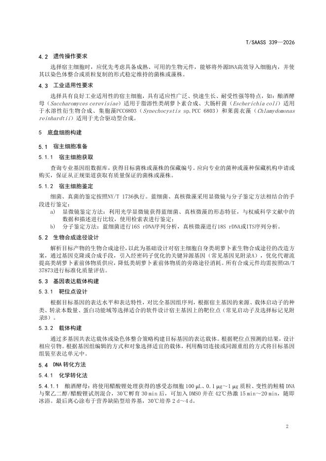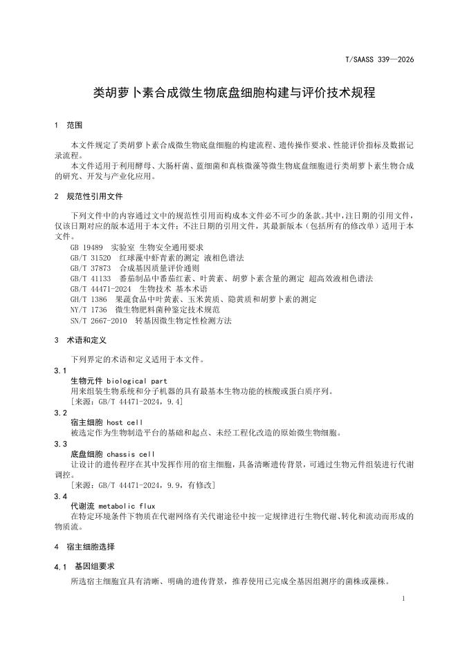 T/SAASS 339-2026 类胡萝卜素合成微生物底盘细胞构建与评价技术规程
