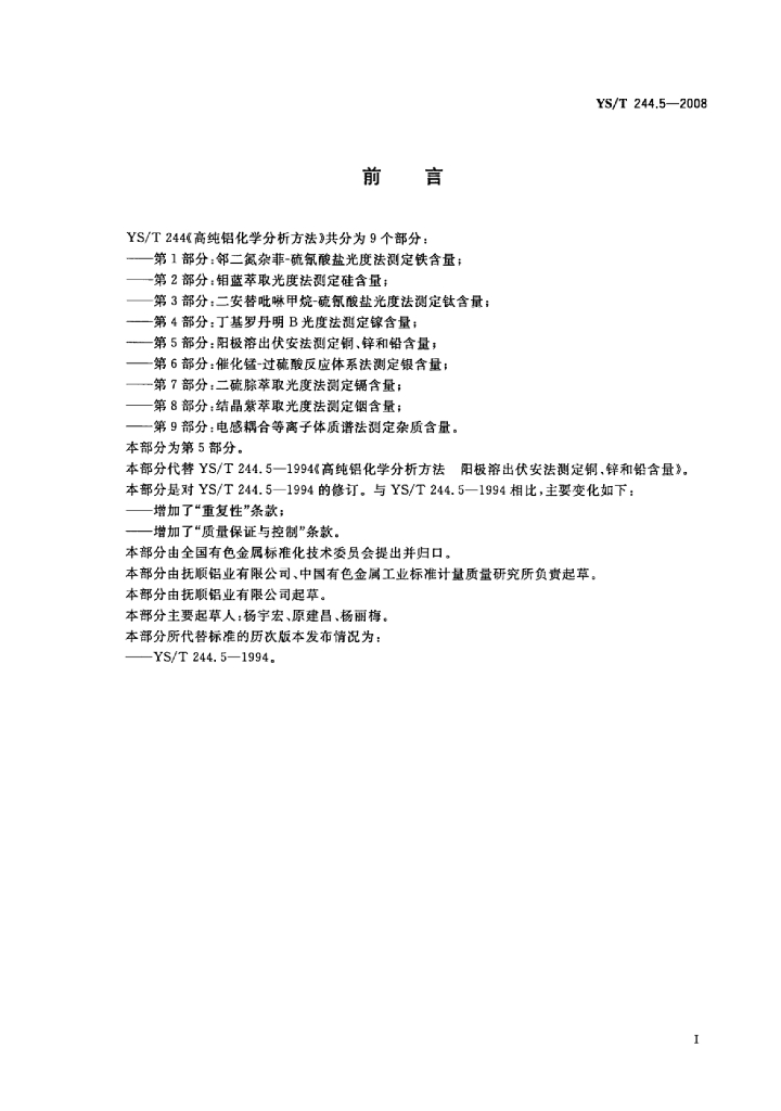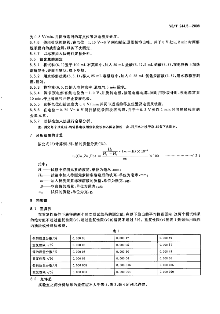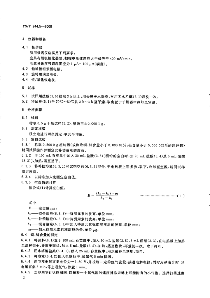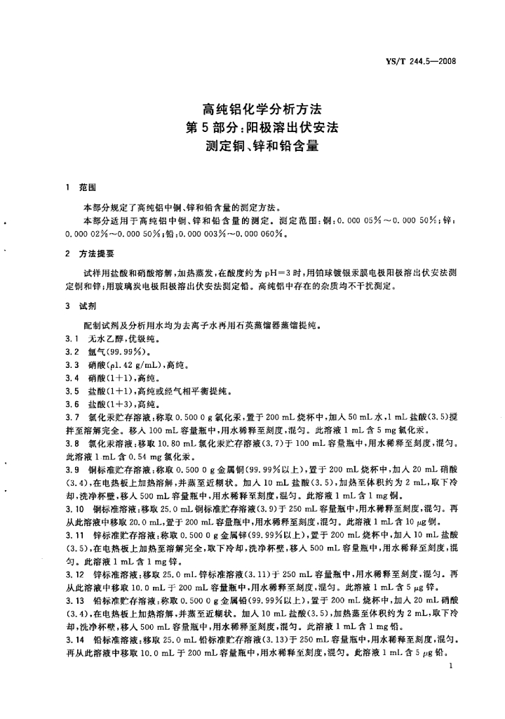 YS/T 244.5-2008 高纯铝化学分析方法 第5部分:阳极溶出伏安法测定铜、锌和铅含量