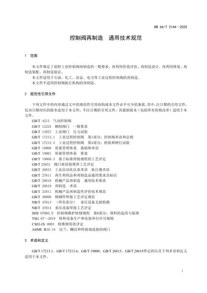 DB64/T 2144-2025 控制阀再制造通用技术规范
