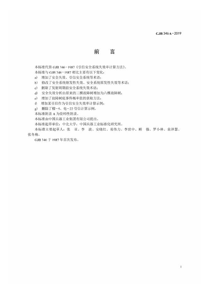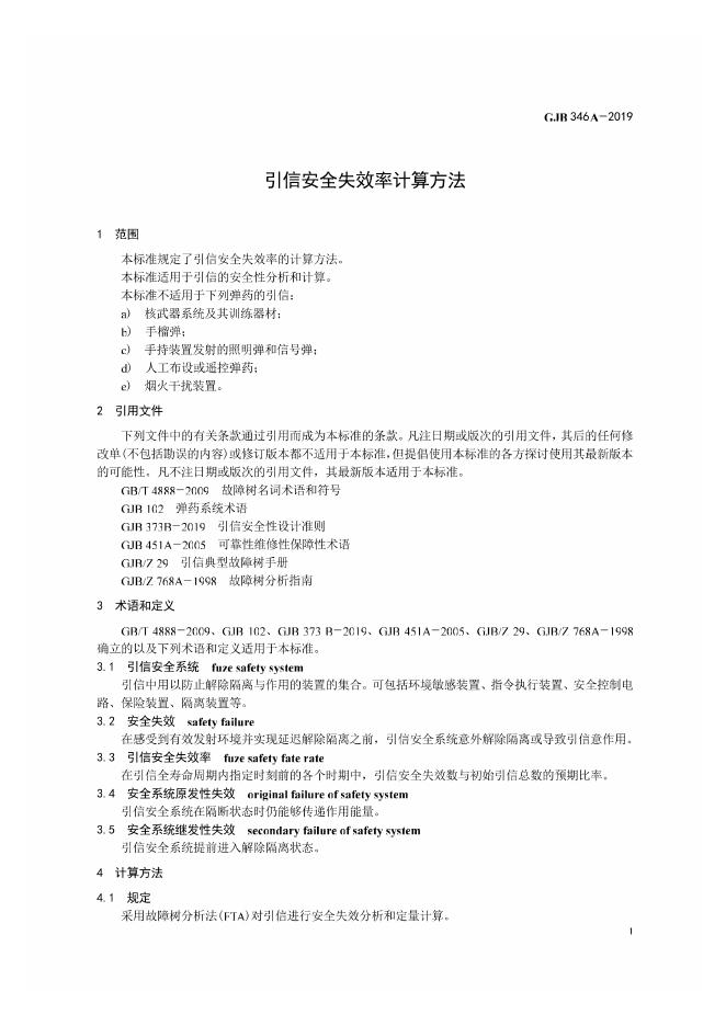 GJB 346A-2019 引信安全失效率计算方法