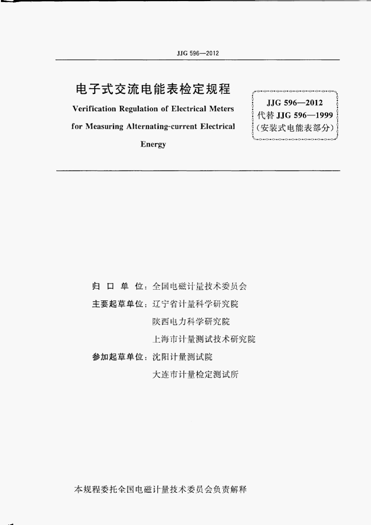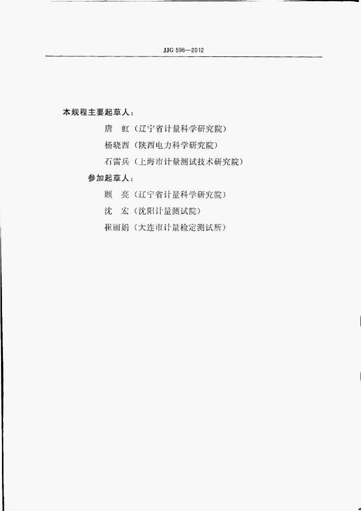 唐虹(辽宁省计量科学研究院)、杨晓西(陕西电力科学研究院)、石雷兵(上海市计量测试技术研究院)、顾亮(辽宁省计量科学研究院)、沈宏(沈阳计量测试院)、崔丽娟(大连市计量检定测试所)