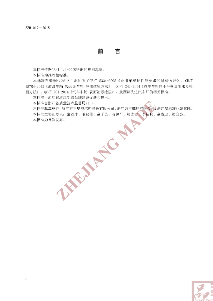 本标准起草单位:浙江万丰奥威汽轮股份有限公司、浙江万丰摩轮有限公司、浙江省标准化研究院。